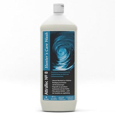AttraTec nr. 8 Hunter Care Wash er et mildt vaskemiddel som er utmerket til rengjøring av jaktklær laget av funksjonelle tekstiler og ull. AttraTec nr. 8 Hunters Care Wash rengjør effektivt klær fra lukt og skitt.
