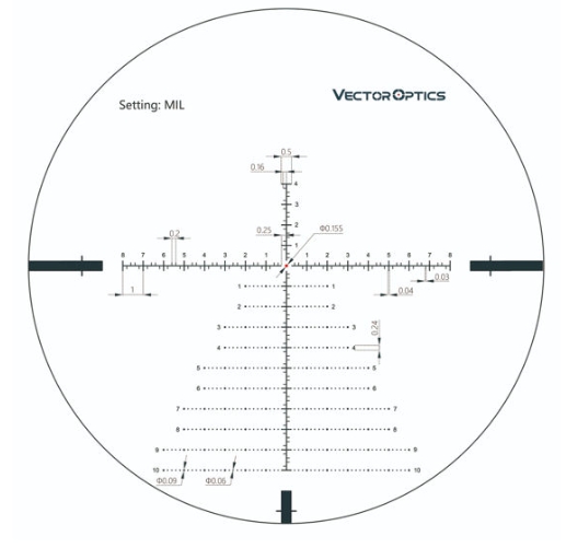 Retikkel i første fokusplan slik at en alltid kan bruke retikkelet til avstandsbedømmelse, treffpunktskorrigering og måling av grupper